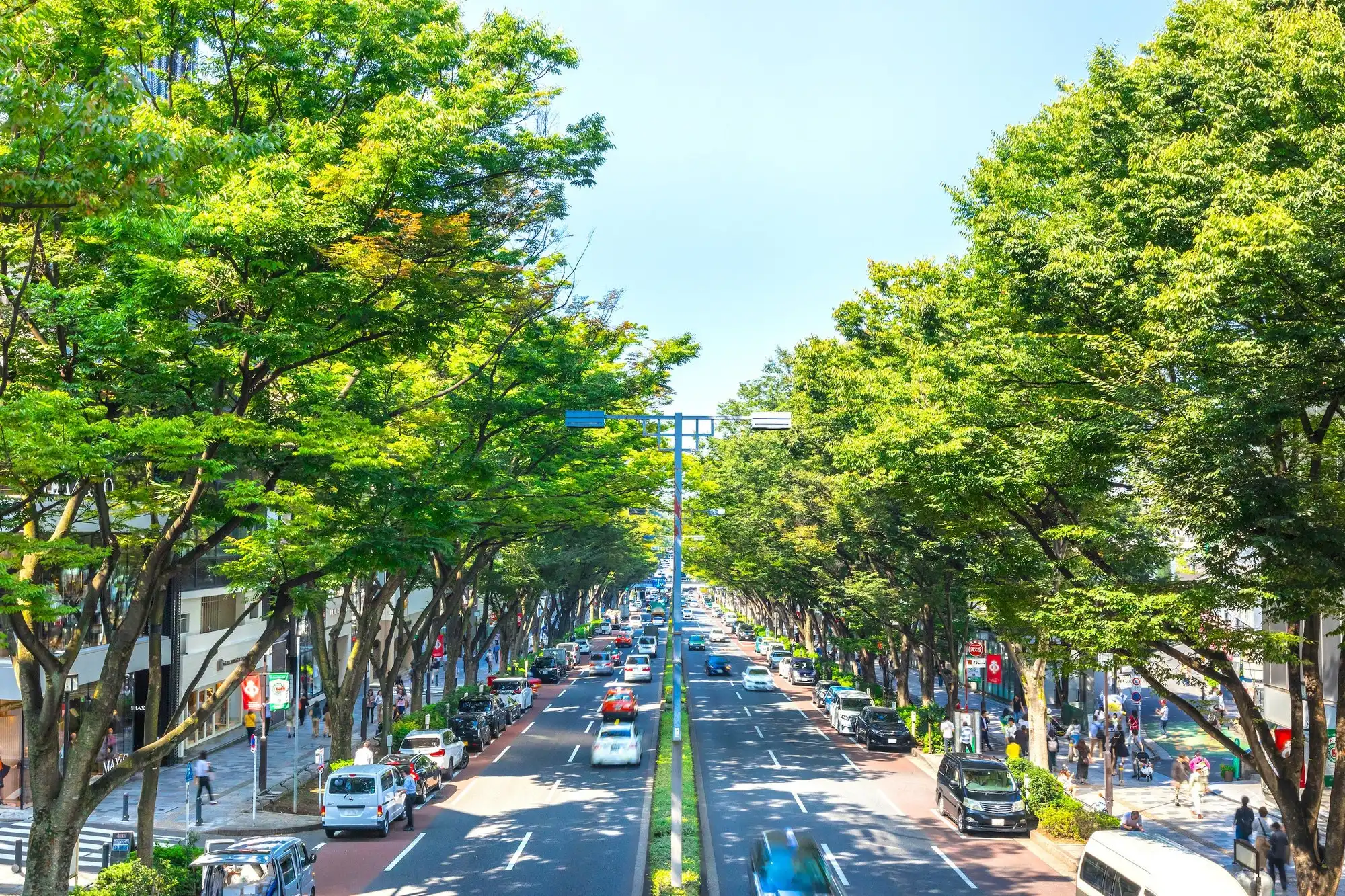 il viale alberato di Omotesando ospita boutique di lusso, offrendo un contrasto affascinante tra moda sperimentale e grandi firme.